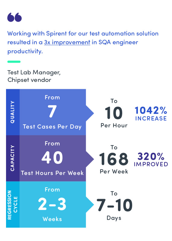 To fast-track chipset design while improving operational efficiency, Spirent is working to help you simplify test complexity, reduce development time and assure your new products perform as expected.